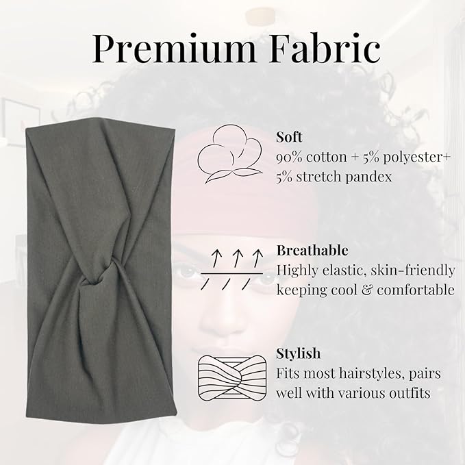 - High-Quality, Durable Material For Head Band - Crafted from 95% polyester and 5% spandex, these wide headbands for women are not only soft and stretchy but also offer excellent durability. The fabric's breathable and sweat-absorbent properties make it ideal for both casual and active wear. Easy to care for, these boho headbands are machine washable and can be laid flat to dry.