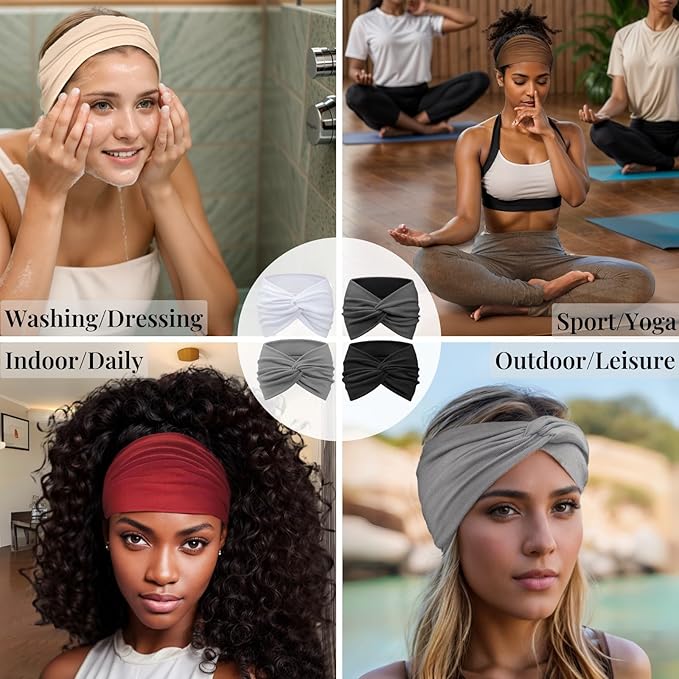 - Multi-Pack Headbands for Daily Use - Get 4 stylish and versatile turban headbands in one set! With a variety of color options to choose from, you can easily match them with different outfits—whether you're going for a sporty look, a casual day, or an elegant occasion. These hair scarves also make an excellent gift for family and friends who love fashionable and functional hair accessories.