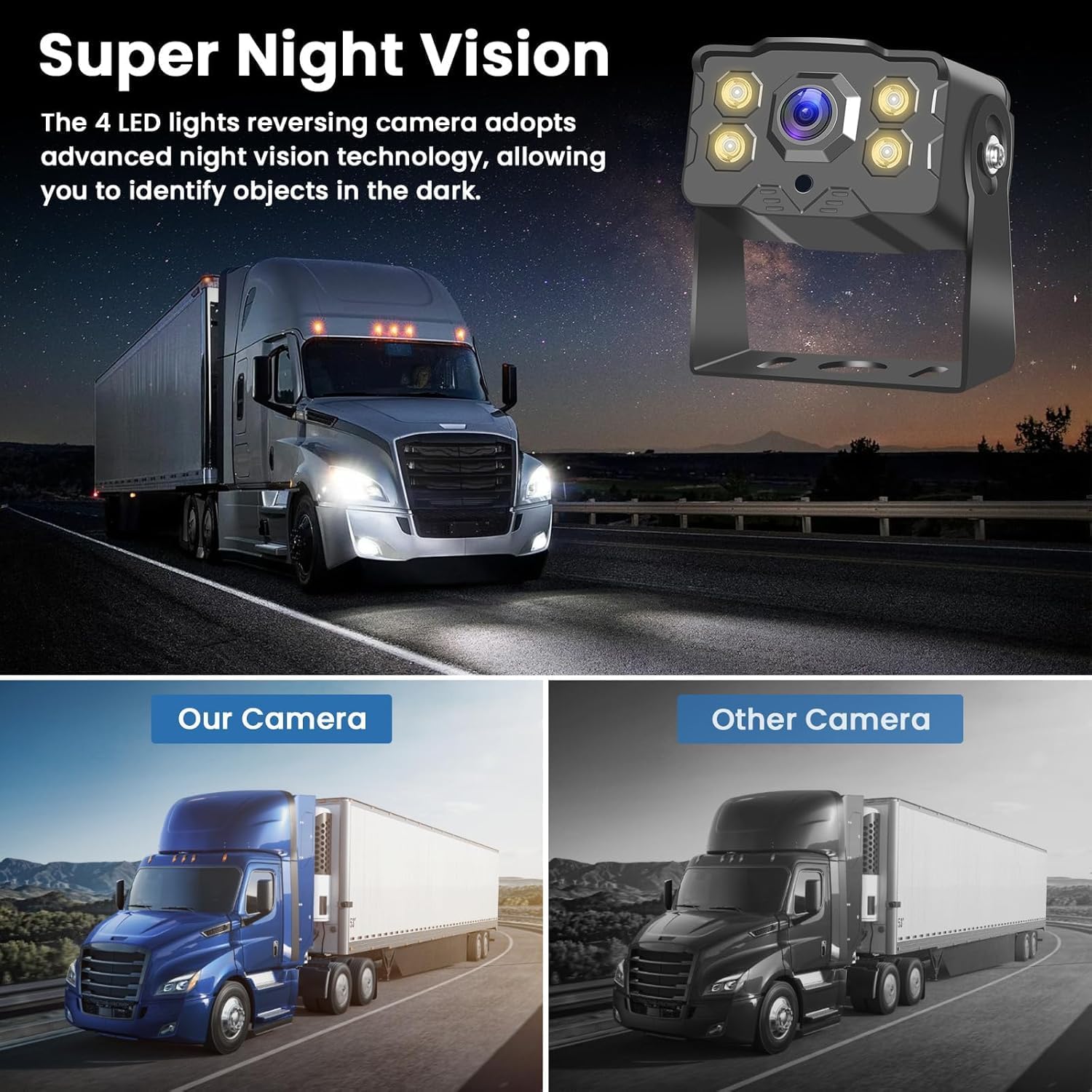 • Excellent Night Vision and Wide Angle: The backup camera features 4 LED lights and advanced night vision technology, enabling clear visibility even in low-light conditions. The wide-angle lens provides a comprehensive view