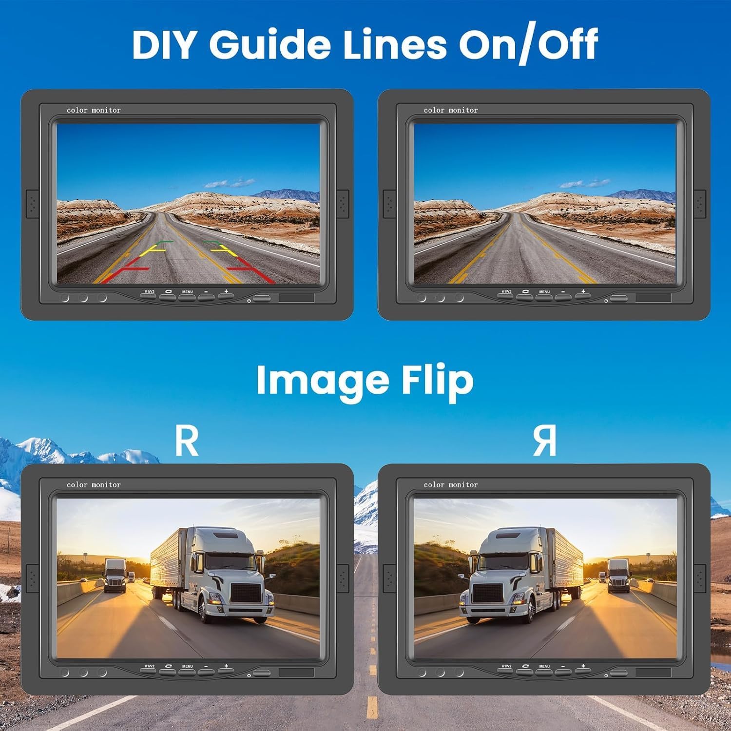 • DIY Parking Grid Line Backup Camera and Image Flip: Customize the guide lines according to your needs and flip the image with a simple button press
