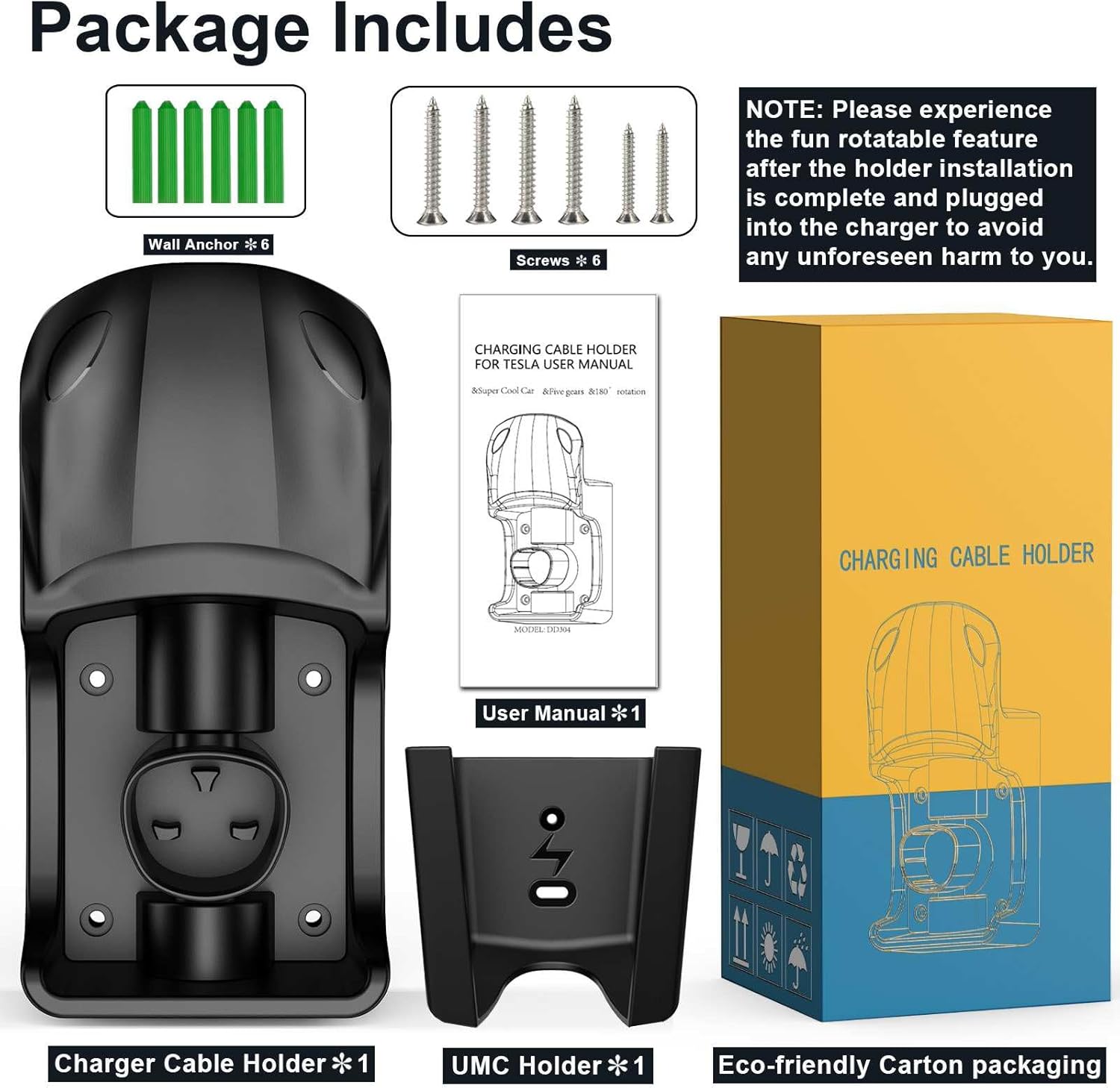 • Easy Installation: The Tesla wall charger holder can be installed in just a few minutes. Product includes 1 Tesla charger cable organizer, 1 UMC bracket, 6 screws, 6 wall anchors, and 1 user manual