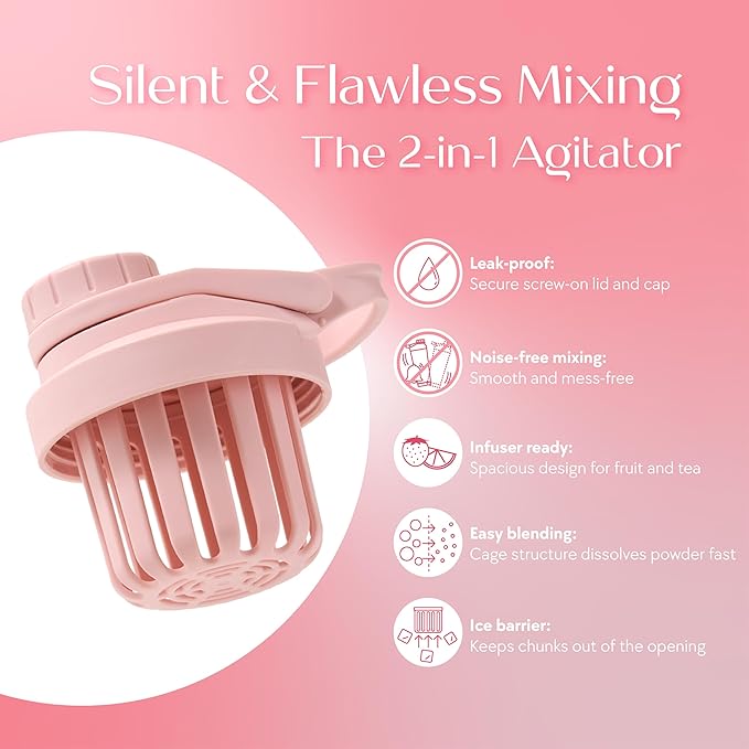- QUIET MIXING: The twist-off agitator efficiently mixes protein powders and nutrition blends, while keeping ice cubes in place—delivering a smooth, lump-free blend without the noise of a traditional blender ball.