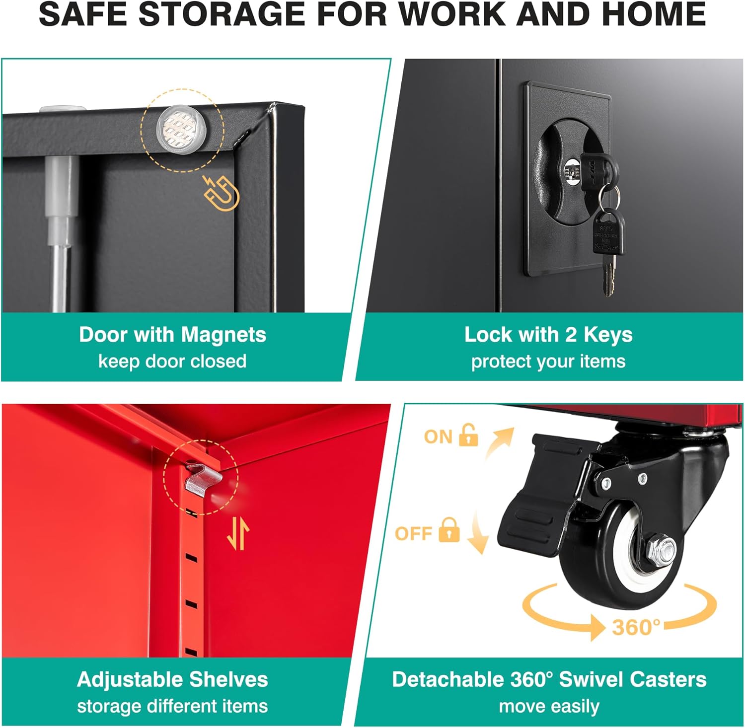 SISESOL 75" Tall Metal Storage Cabinet with Wheels,Rolling Garage Storage Cabinet with Lock,Red Metal Cabinets on Wheels,Locking Tool Cabinets on Wheel for Garage,Home,Office,Shop