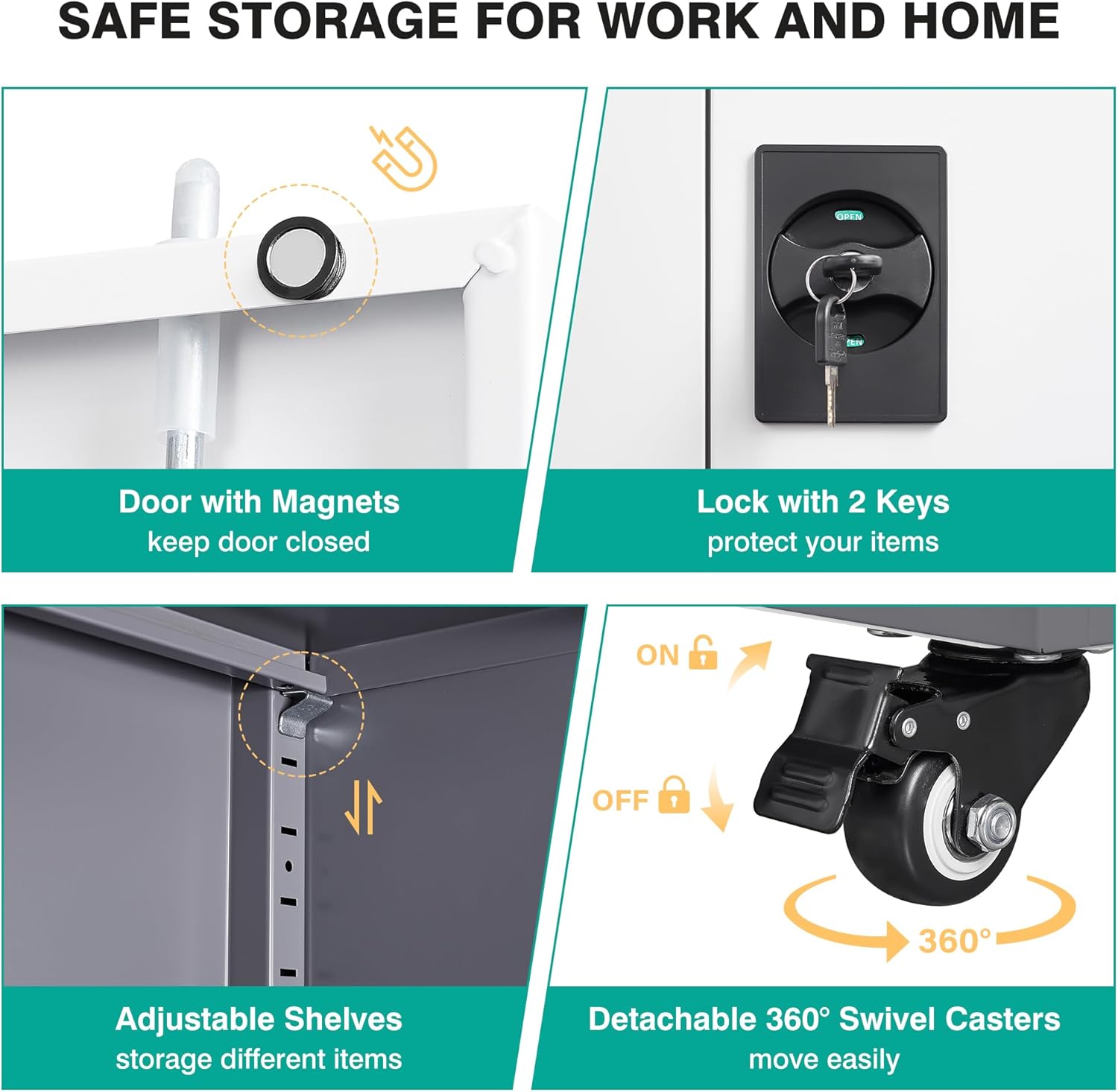 - ✔️☆【Detachable & Lockable 360° Swivel Casters - Adjust As Needed】:Metal storage cabinet on wheels is easy to move around.It has a strong and durable metal frame with excellent load-bearing capacity, allowing you to store enough items.