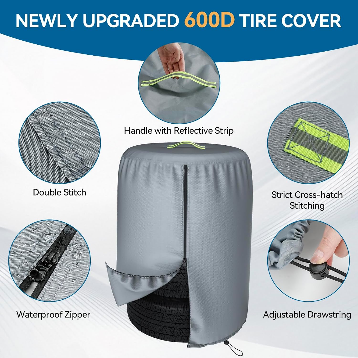Durable 600D Tire Storage Bag,Large Tyre Dust Protective Cover with Waterproof Zipper, Spare Stack Storage Tire Cover for Indoor/Outdoor Use,Universal Fits Trucks,SUV,Jeep,Car,Trailer,RV,Camper Wheels