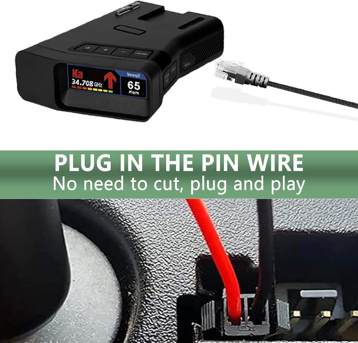 - 13.8 "radar detector hard wired power cord mirror wire plug includes 3 sizes of pins, please choose the pin you need. The built-in inline fuse holder provides a more stable connection for the radar detector. It is easy to install, does not require cutting, and is plug and play.