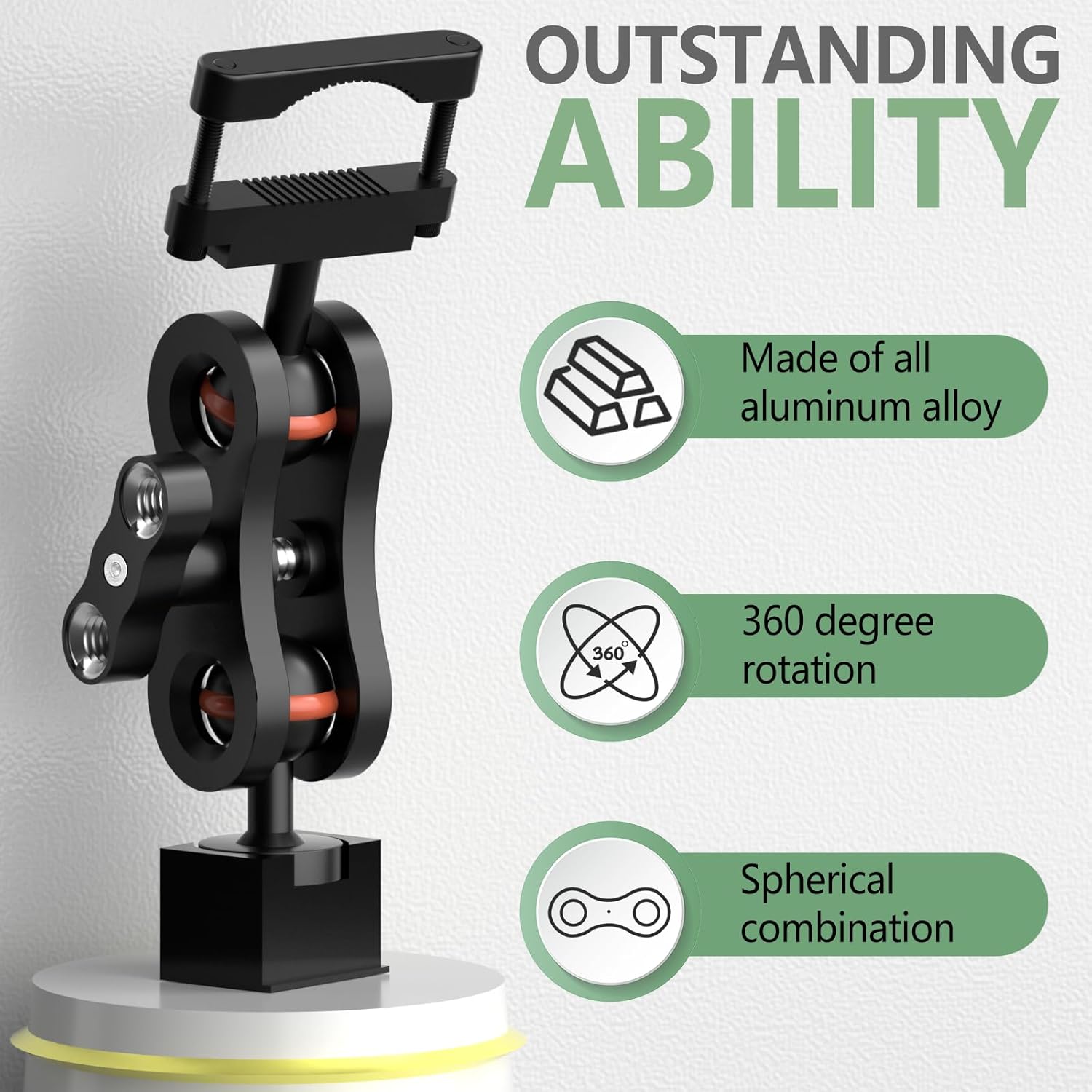 - Aluminum rearview mirror bracket has strong expandability, with two 1/4 screw holes at the handle that can be used to expand other devices.360 °rotating ball head design, flexible adjustment, ensuring the best viewing angle while driving.
