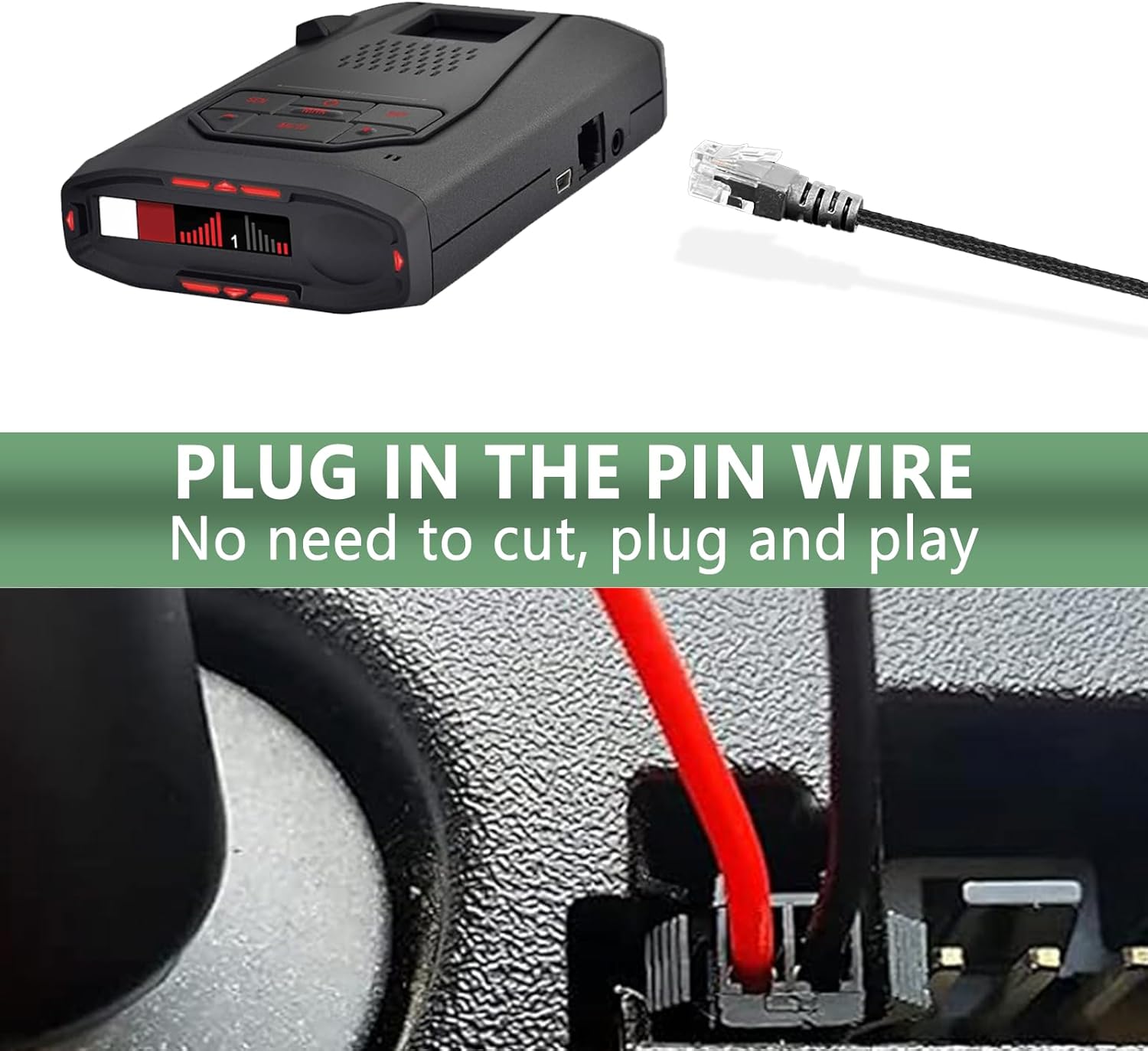 - 13.8 "radar detector hard wired power cord mirror wire plug includes 3 sizes of pins, please choose the pin you need. The built-in inline fuse holder provides a more stable connection for the radar detector. It is easy to install, does not require cutting, and is plug and play.