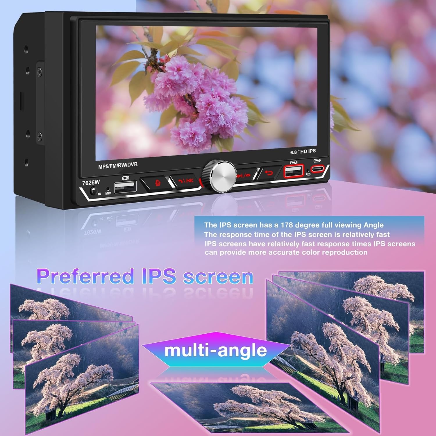 - 3. HD 6.8" IPS Touchscreen: Enjoy vibrant visuals and wide viewing angles with the 1280x600 resolution IPS display, ensuring clear, bright visuals even in sunlight—perfect for navigation and media playback.