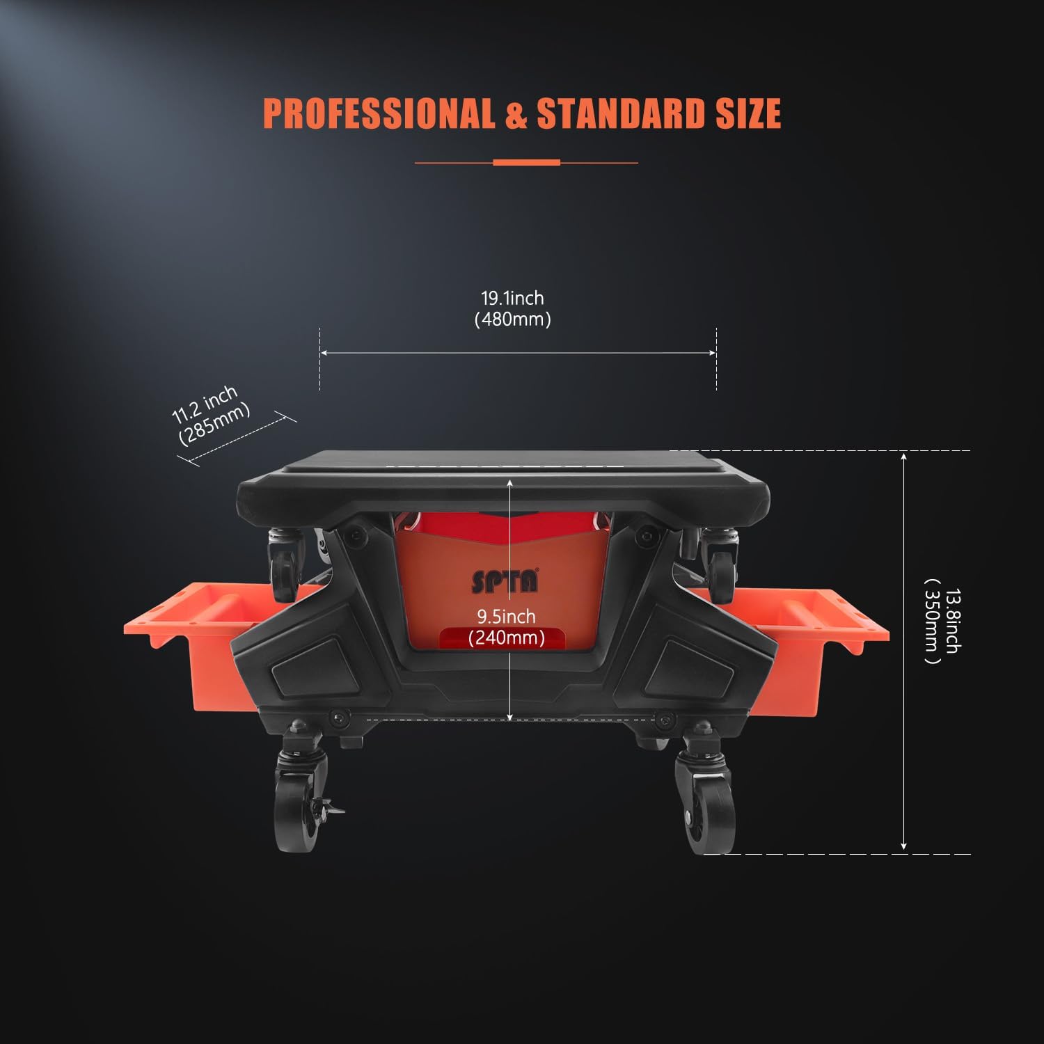 SPTA Automotive Mobile Rolling Mechanics Stool - Heavy Duty Roller Creeper Seat Soft Rubber Cushion Brake Wheels Storage Drawers Tray Roller Seat for Home DIY Garage Car Detail, 330lb Load Bear -PT161