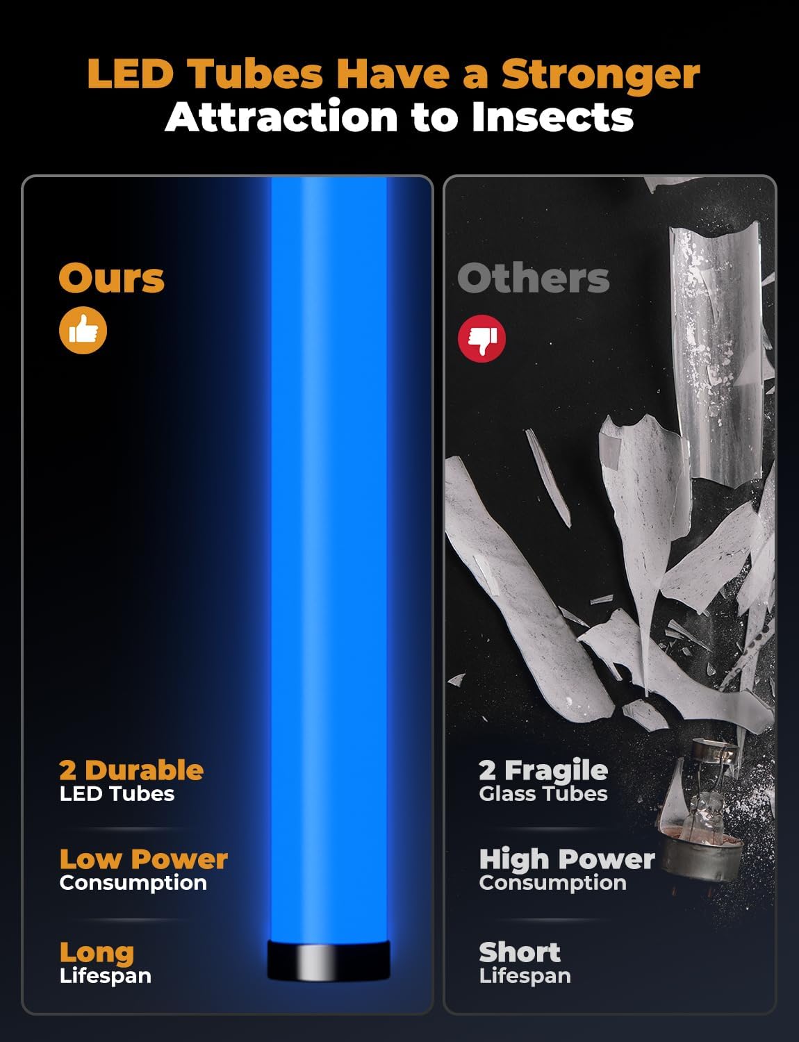- (Long Lating LED Bulb 365nm Attractant Light) YISSVIC bug zappers indoor use LED long lasting bulb rather than UV bulb to effectively eliminate flying bugs silently. No Replaced LED bulb to attract the mosquito better than white light. Works best at night