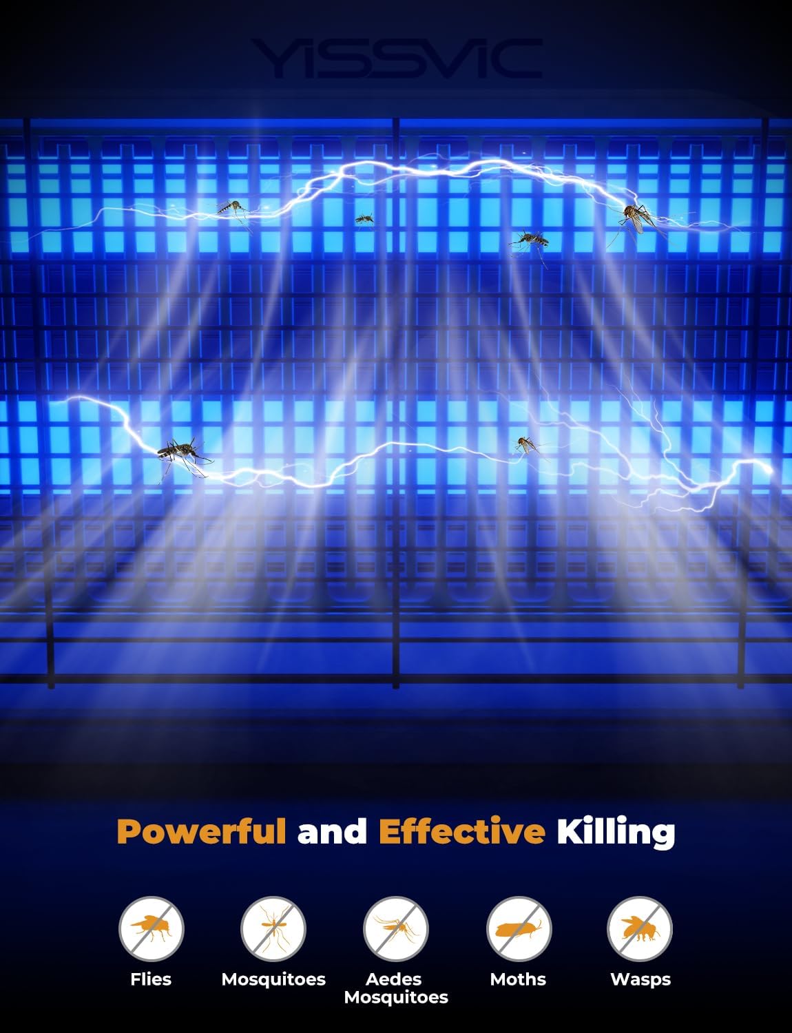 - (Extended 6.6ft Power Cord for Hanging up) Compare with most 4.9ft cord, YISSVIC indoor fly zapper is convenient for indoor use free from cords that are too short. Powerful 4000V high-voltage physical electric shocks to kill bugs like mosquitoes, flies, moths, and gnats,etc