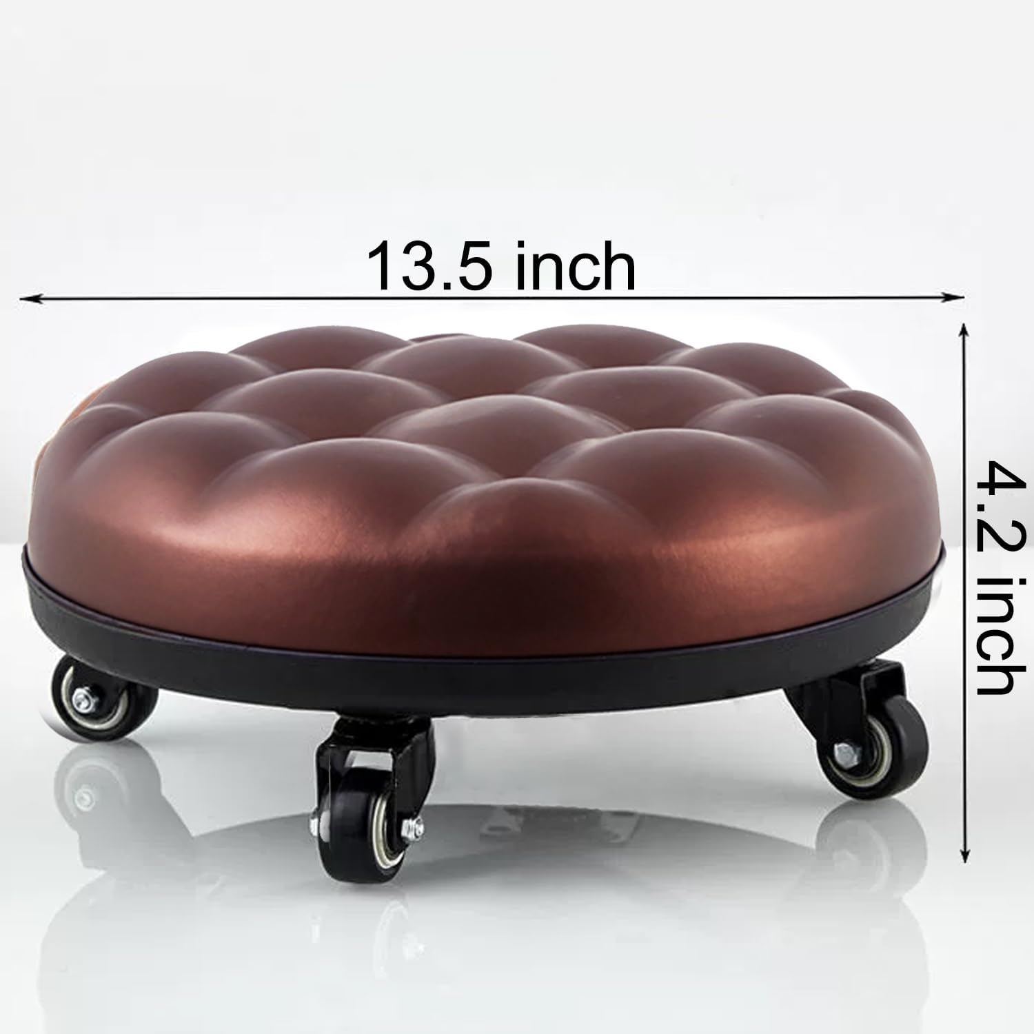 Low Roller Seat 13’’, Brown Swivel Rolling Stool with 5 Rolling Caster Wheels, PU Leather Low Seat Tool Heavy Duty for Home and Office, Modern Comfortable Wheel Stool Chair Low Height, 1Pcs