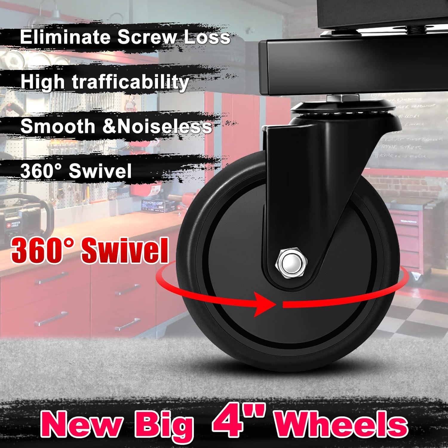 - Ease to Move: Our workshop stool is equipped with 4 pcs 360°swivel universal caster wheels, ensuring excellent maneuverability on any surface. These high-quality wheels provide robust support for the stool, enabling smooth pivoting even on uneven or complex terrains. They operate quietly, offer long-lasting durability, and ensure stable movement.