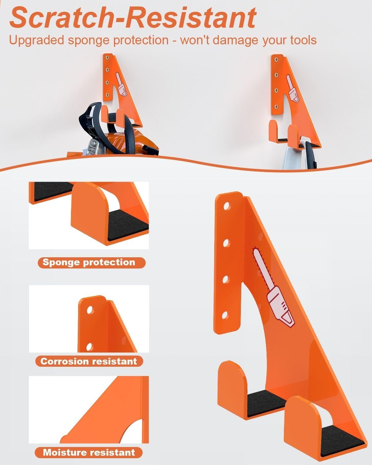 - đȘăUniversal Fit & Easy InstallationăSimple 3-step setup: mount bracket, secure screws, hang saw. Compatible with Stihl, Husqvarna, Echo, and most chainsaws.