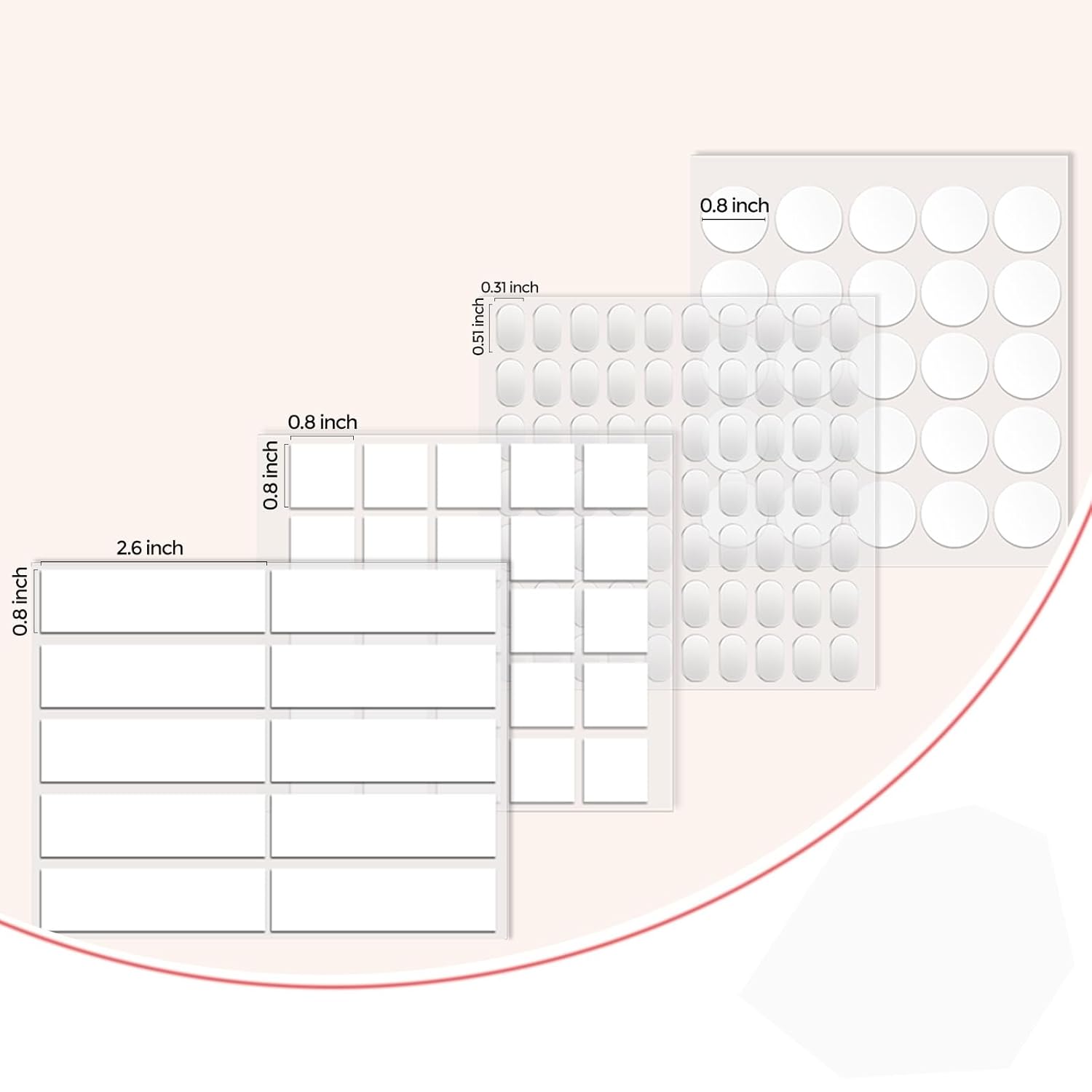 - Large Quantity: 360pcs in total, providing ample supplies for all your needs. Round: 0.8 inch , Square: 0.8 inch , Strip: 0.8 x 2.6 inch, Small Oval: 0.31 x 0.51 inch