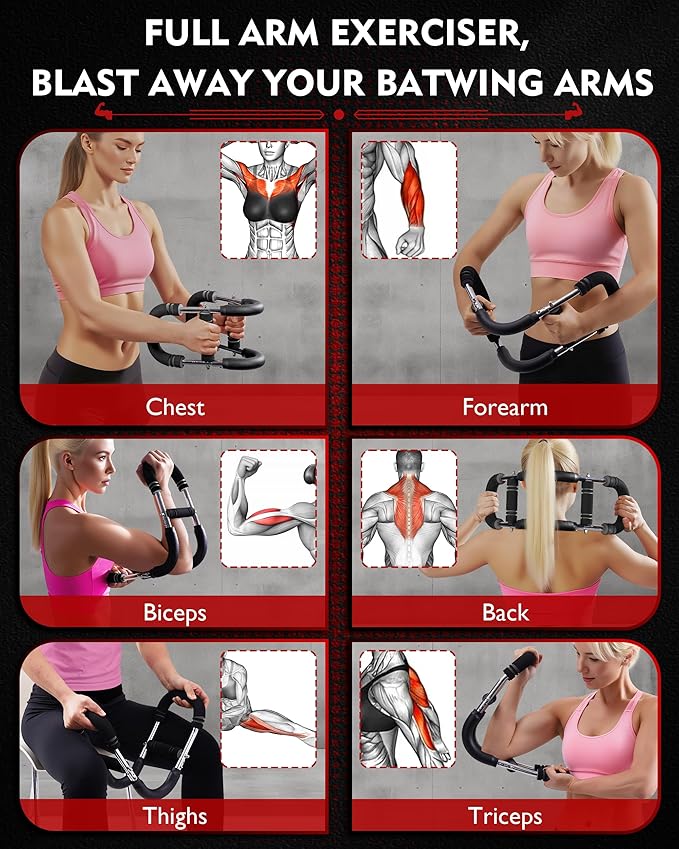 - Versatile Muscle-Toning Helper: Unlike basic arm tools, this trainer works more muscle groups. It’s a star for toning stubborn flabby arms, plus chest, wrists, back, and shoulders. Follow the routine, and you’ll see tighter arms, better posture, and that desired toned look—no heavy weights required.