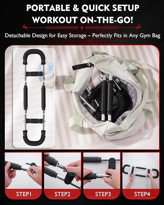 - Portable Heavy-Duty Design: Featuring an ultra-compact, foldable construction that stores effortlessly in gym bags (16.5Γ6.5Γ3.5in), car trunks or office spaces. The lightweight yet rugged frame (4.4lbs) makes it ideal for home workouts, business trips, hotel stays or quick office training sessions - ensuring consistent progress anywhere.