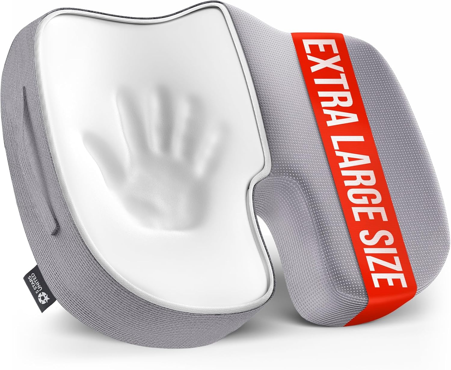 5 STARS UNITED Seat Cushion for Tailbone Pain Relief โ Large Memory Foam Lifting Pillow for Coccyx, Hip, Sciatica & Post-Surgery Recovery โ Wheelchair, Car, Desk, Gaming & Office Chairs, Light Gray