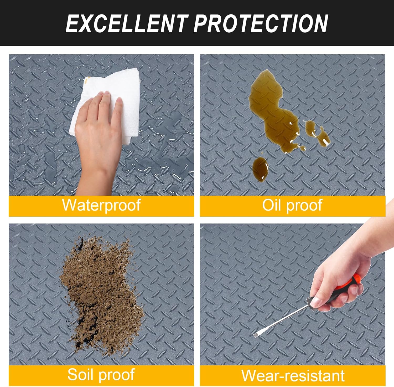 - Durable Protection: This garage floor mat is made from high-quality, heavy-duty material designed to protect your garage floor from oil spills, dirt, water, and other debris, ensuring a clean and safe workspace.
