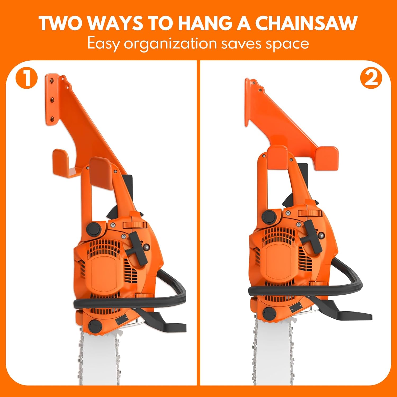 - Upgrade your garage storage with our Chainsaw Hanger and experience the convenience and efficiency of having all your tools easily accessible and neatly organized. Order now and experience the difference in your workspace.