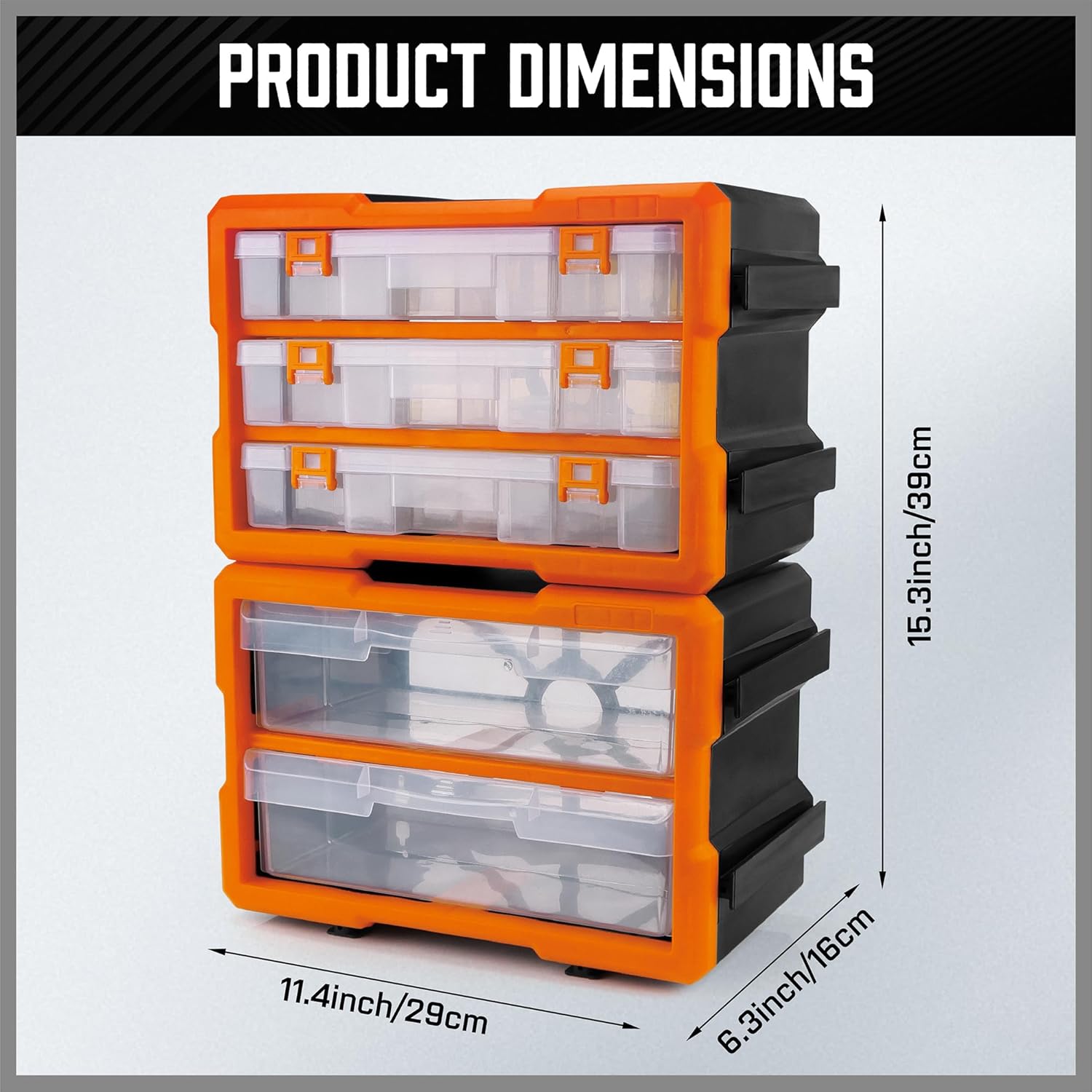 - 5-DRAWER MULTIPURPOSE STORAGE β Features 5 durable drawers with 21 dividers for organizing small parts, tools, screws, beads, and more, ideal for home, office, and workshop use