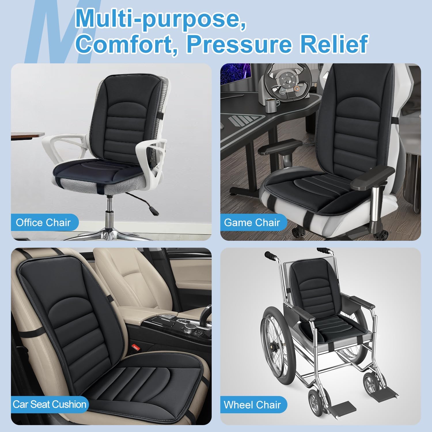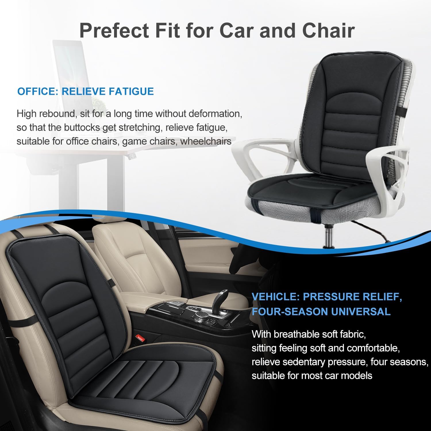 - Prefect fit for car and chair:This Seat and back cushion is a perfect fit for your car or chair. This seat support cushion is suitable for almost all types of vehicles, including cars, trucks, SUVs and jeeps. It is also suitable for a wide range of scenarios such as office chairs, home chairs, gaming chairs, wheelchairs and armchairs.Versatile and versatile, no matter where you sit, this chair seat cushion will meet your needs.