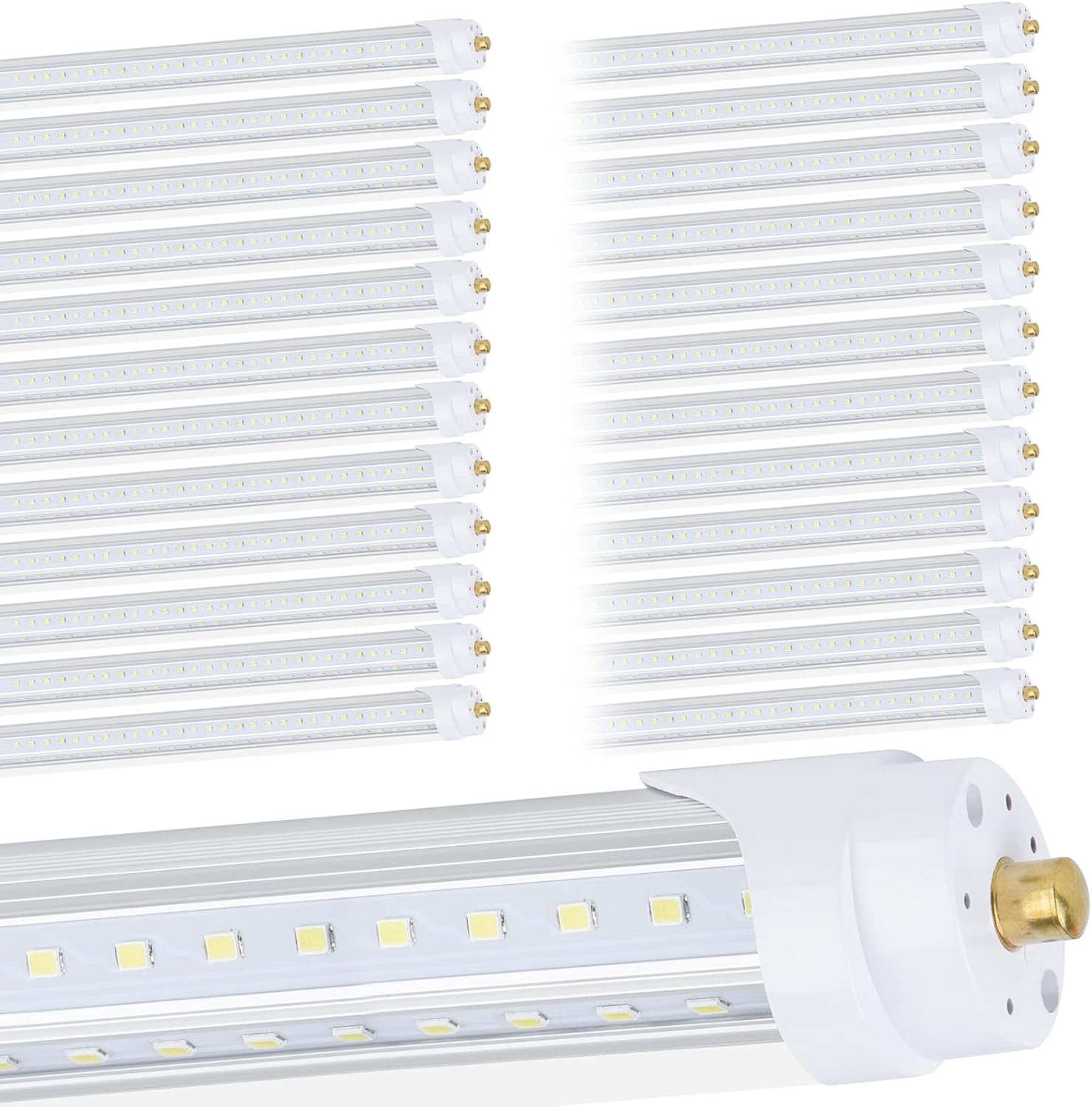 25 Pack, T8/T10/T12 8FT LED Tube Light, Single Pin FA8 Base, 100W 6000LM 6000K Cold White, 270 Degree V Shaped LED Fluorescent Bulb (200W Equiv.), Clear Cover, Dual-Ended Power