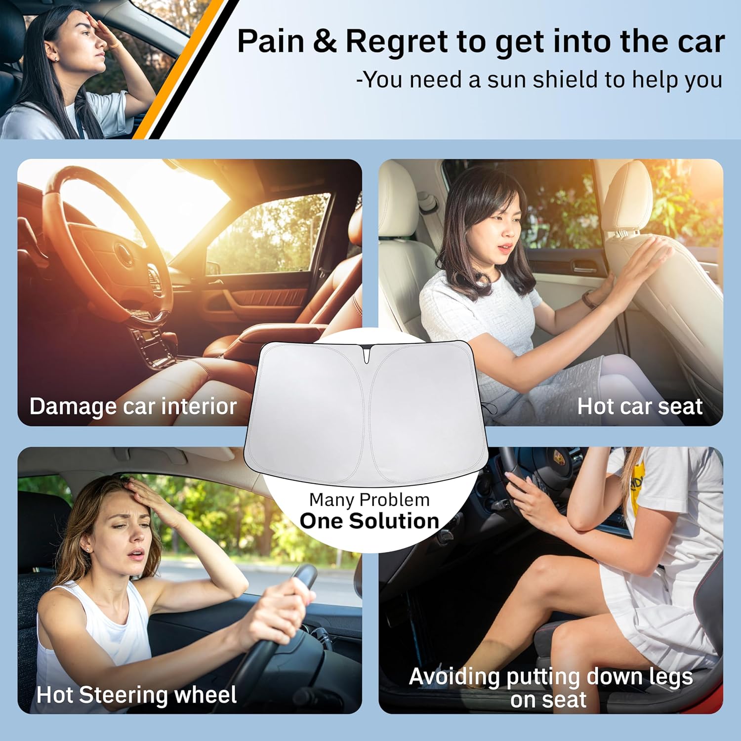 - ✅ 4-Layer Advanced Thermal Shield – Features a dual-layer design with a reflective silver outer layer and thermal black inner lining. This insulation ensures a cooler interior and shields your vehicle from long-term sun damage.