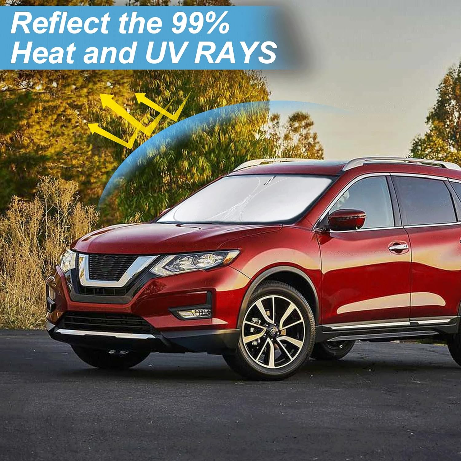 - [CUSTOM-FIT FRONT WINDSHIELD SUNSHADE] Automotive windshield sun shade is Specifically designed,which for Nissan Rogue 3rd Gen 2021 2022 2023 2024 accessories. We have several size of car sunshade. Please measure your car size and refer to our size before your purchase. Once installed it won't have gaps, sags or slumps like other car sun shade windshield