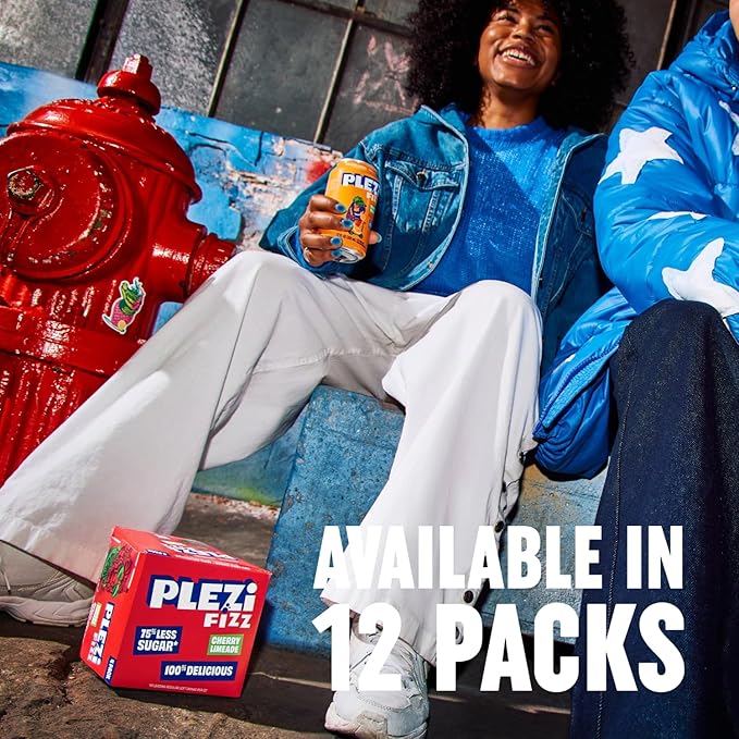 PLEZi FiZZ Cherry Limeade Sparkling Juice - Healthy Soda Alternative with Real Fruit Juice, No Added Sugar - Low Sugar Sparkling Drink - Good Source of Fiber, 12 Fl Oz (12 Pack)