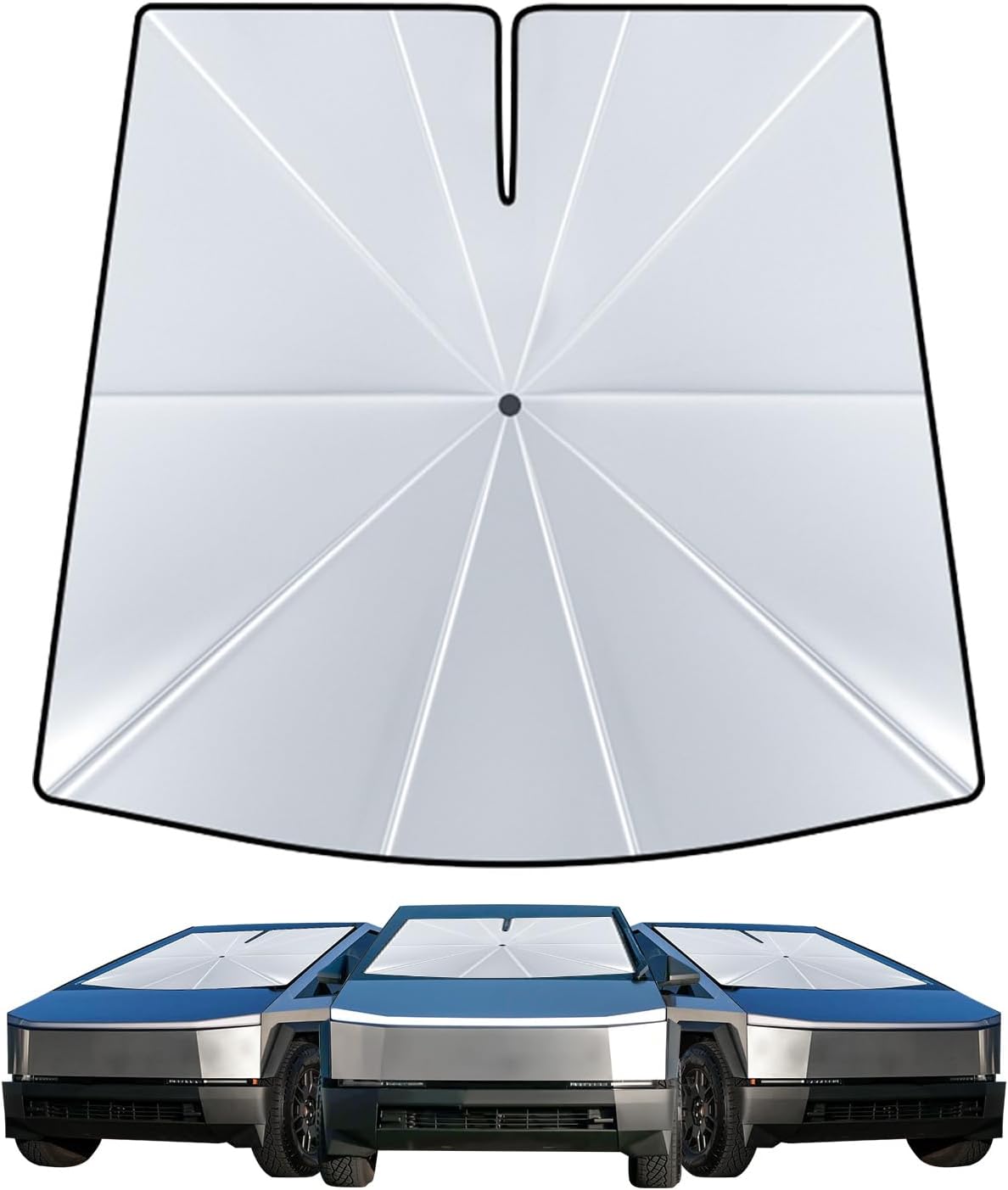 - 【2025 UPGRADE MATERIAL-EFFECTIVE 99% UV PROTECTION】: This [2025 Upgrade] cybertruck sunshade for windshield is designed with a thickened titanium silver coating, which has powerful shading and thermal insulation functions, blocking and reflecting 99% of UV rays, preventing the interior of the car from cracking, fading or aging due to prolonged exposure to high temperatures and creating a cool and comfortable driving atmosphere for you