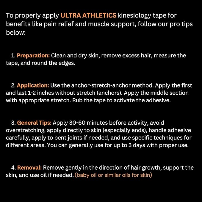 - COPPER INFUSION: Advanced kinesiology tape enhanced with copper elements to provide targeted support and promote natural recovery during physical activities
