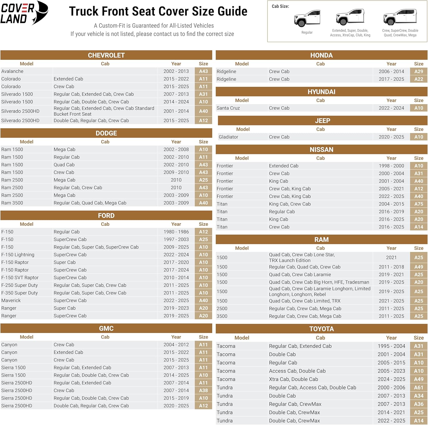 - CUSTOM FIT & ULTIMATE PROTECTION: Protect your 2007-2013 Silverado 1500 Regular Cab, Extended Cab, Crew Cab, 2000-2004 Frontier Crew Cab, 1995-2004 Tacoma Regular Cab, Extended Cab, 2001-2004 Tacoma Double Cab with our custom-fit seat covers. These covers are designed for full coverage and safeguard your seats from wear, tear, and stains. The sleek, modern design enhances your car's interior and provides comprehensive protection against everyday use.