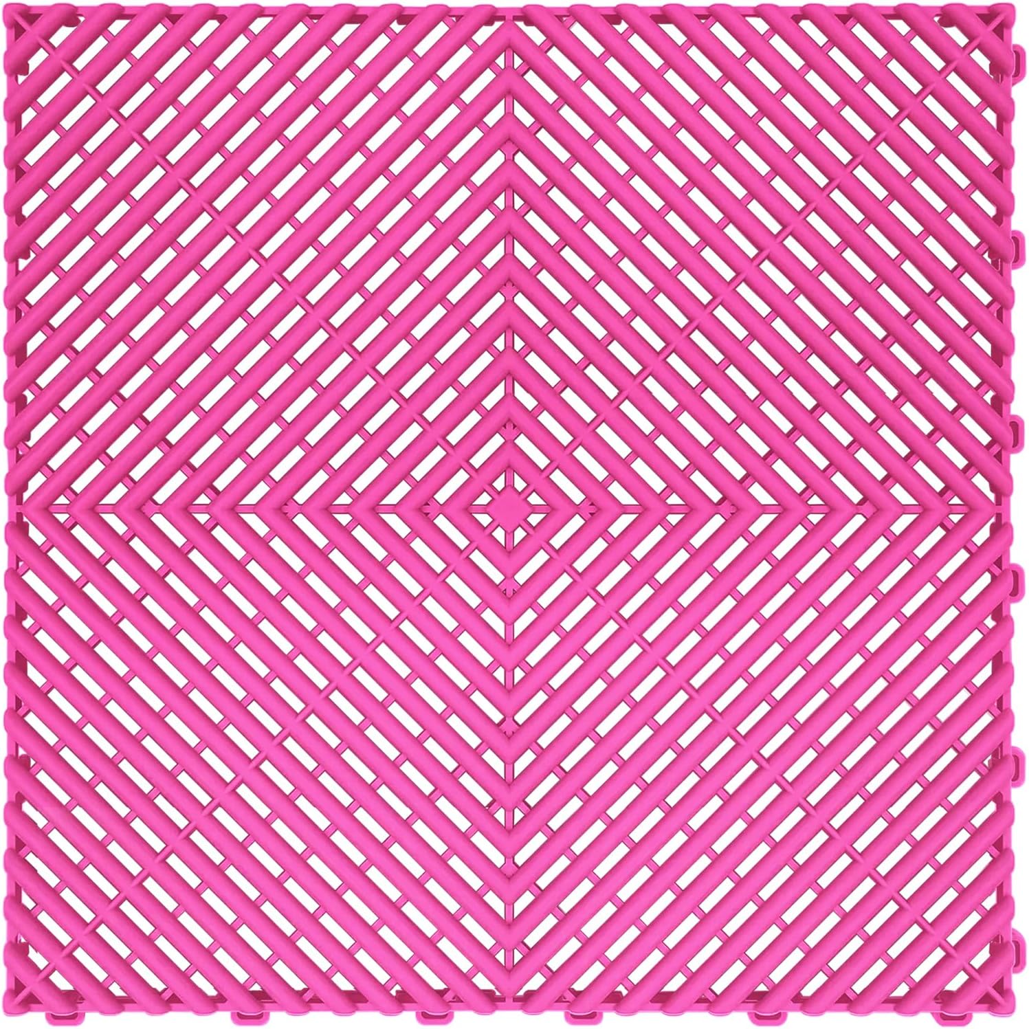 15.7"x15.7" Garage Flooring Tiles, Non-Slip Interlocking Plastic Garage Floor Mat, Garage Organization & Garage Storage, Vented Pattern (Carnival Pink, 25PCS)