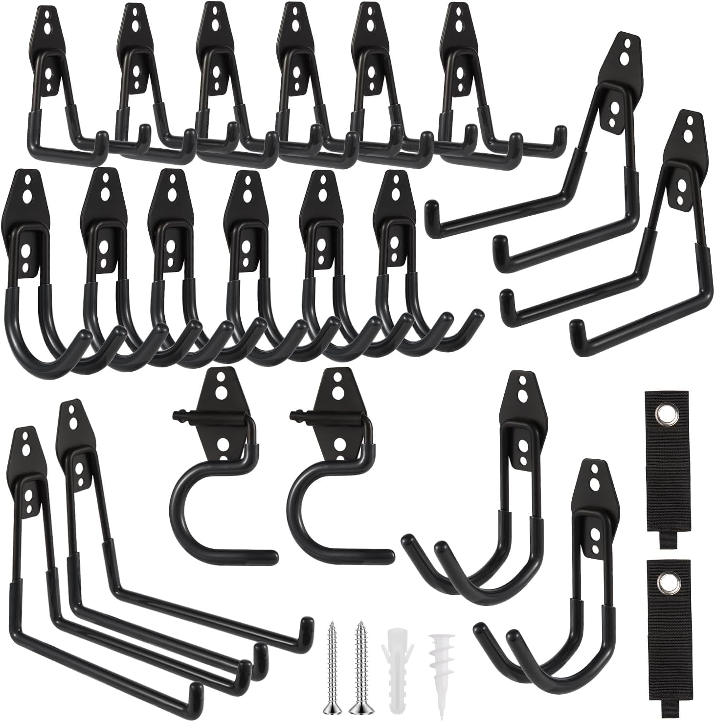 Garage Hook Heavy Duty Wall Storage Hangers, 22 Pack Garage Storage Hooks Steel Tool Black for Ladders, Ropes, Garden Tools
