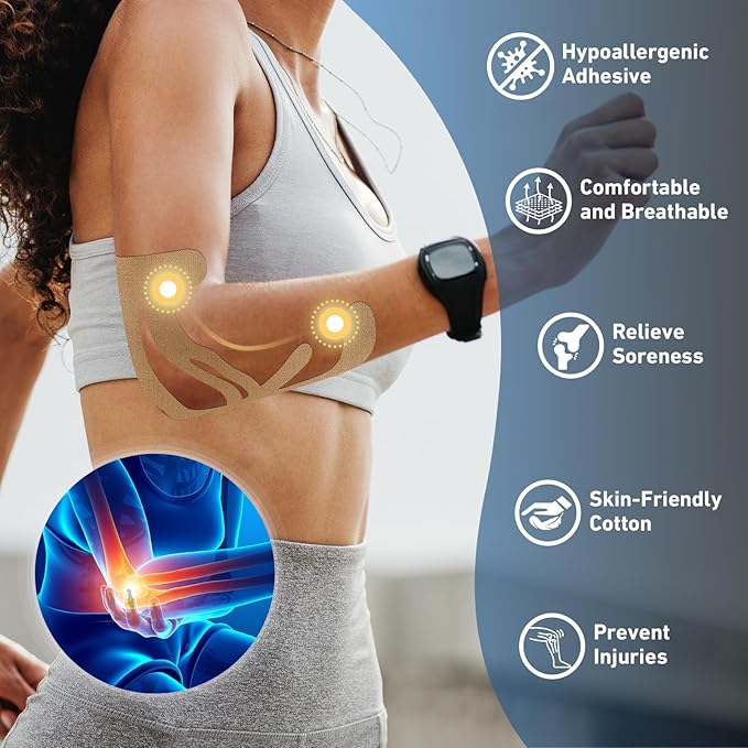 - 🏅🚶♀️Support That Lasts for Days - Designed to stay in place for up to 5 days, our tape ensures extended elbow support, even during long competitions or events. Constructed from soft, breathable cotton, allowing extended wear without discomfort or skin irritation