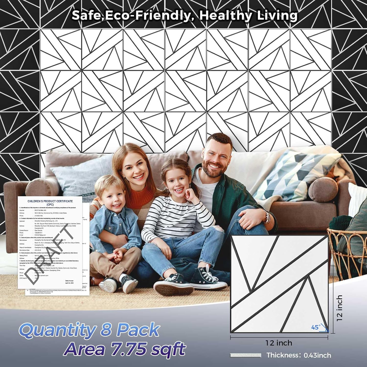 8 Pack 2-Layer Soundproof Wall Panels, 12 x 12 x 0.43 in Sound Proof FoamPanels for Walls, 1.2lb/ft* High Density, Thicker 0.43 in, 3D AcousticPanels,Artistic Noise Dampening Panels White&Black