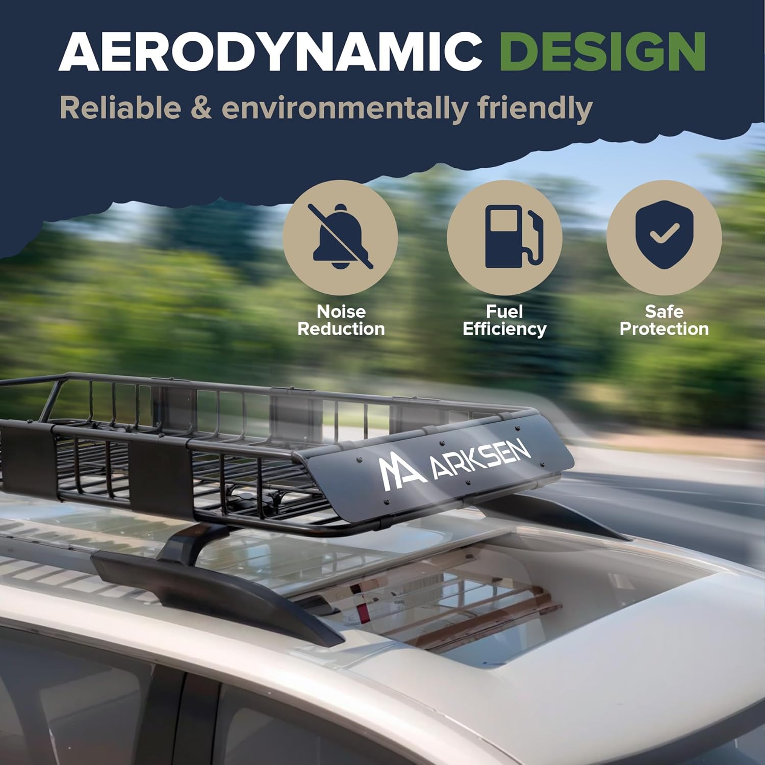 - Aerodynamic Design: The steel wind deflector on this roof rack reduces drag and noise while improving fuel efficiency. Plus, its smooth rounded edges protect both your gear and hands from scratches and injuries during loading/unloading.