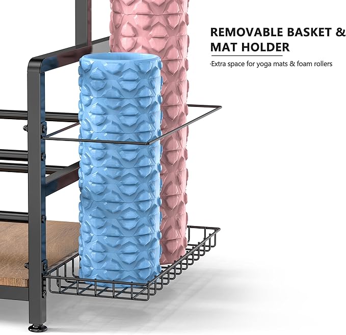 - All‑in‑One Gym Storage Rack – Holds 8 hex dumbbells, 3 kettlebells, 2 medicine balls, an ab wheel, yoga strap, mats, rollers and bands in one 24" rack—no more toe‑stubbing piles, just grab and go.