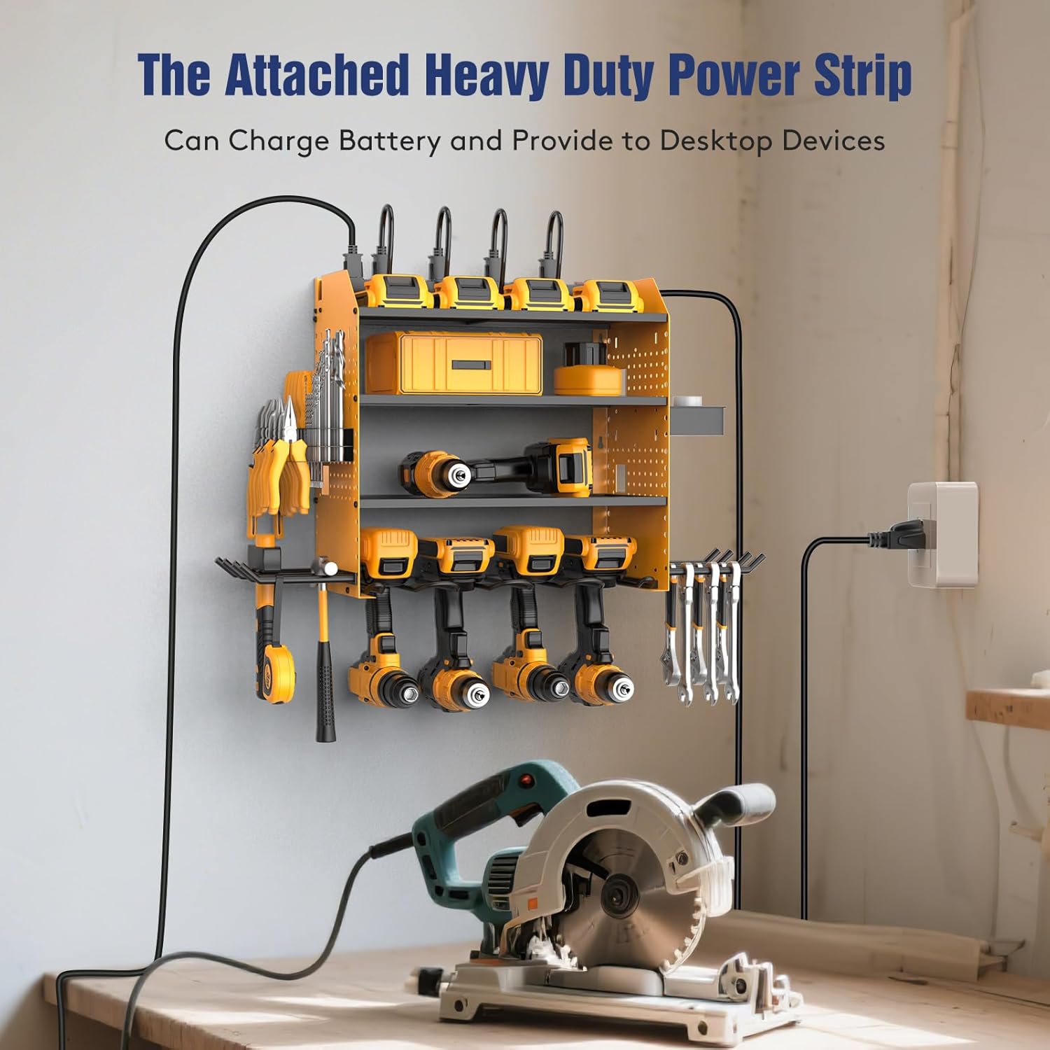 - 【Convenient Tools Charging Station】Very convenient for charging your tool batteries, All-in-one design, the metal power strip with 8 outlets and overload protection. If you have a lot of rechargeable tools, you can charge everything right in the rack and avoid searching for sockets. 5.9ft power cord included.