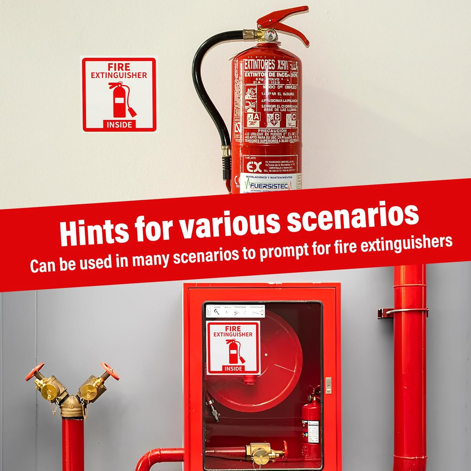 Madrigal Fire Extinguisher Inside Sticker Sign,4Pack 3x3" Self-Adhesive Vinyl, Weatherproof & UV Protected for Cars, Trailers, Rv's, Trucks and Vehicles, Red on White