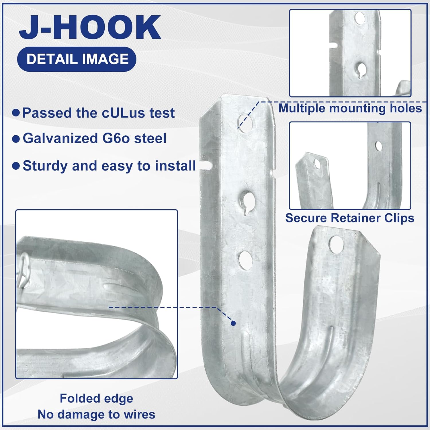 - Versatile for Different Applications: these j hooks have a thoughtful design that makes them adoptable in different situations, adjustably suited for managing and lending support to a plethora of cable types including network cables, electrical cables, CAT5e, CAT6, CAT6a, CAT7, fiber and most low voltage cables, making them versatile for usage in both commercial and residential settings