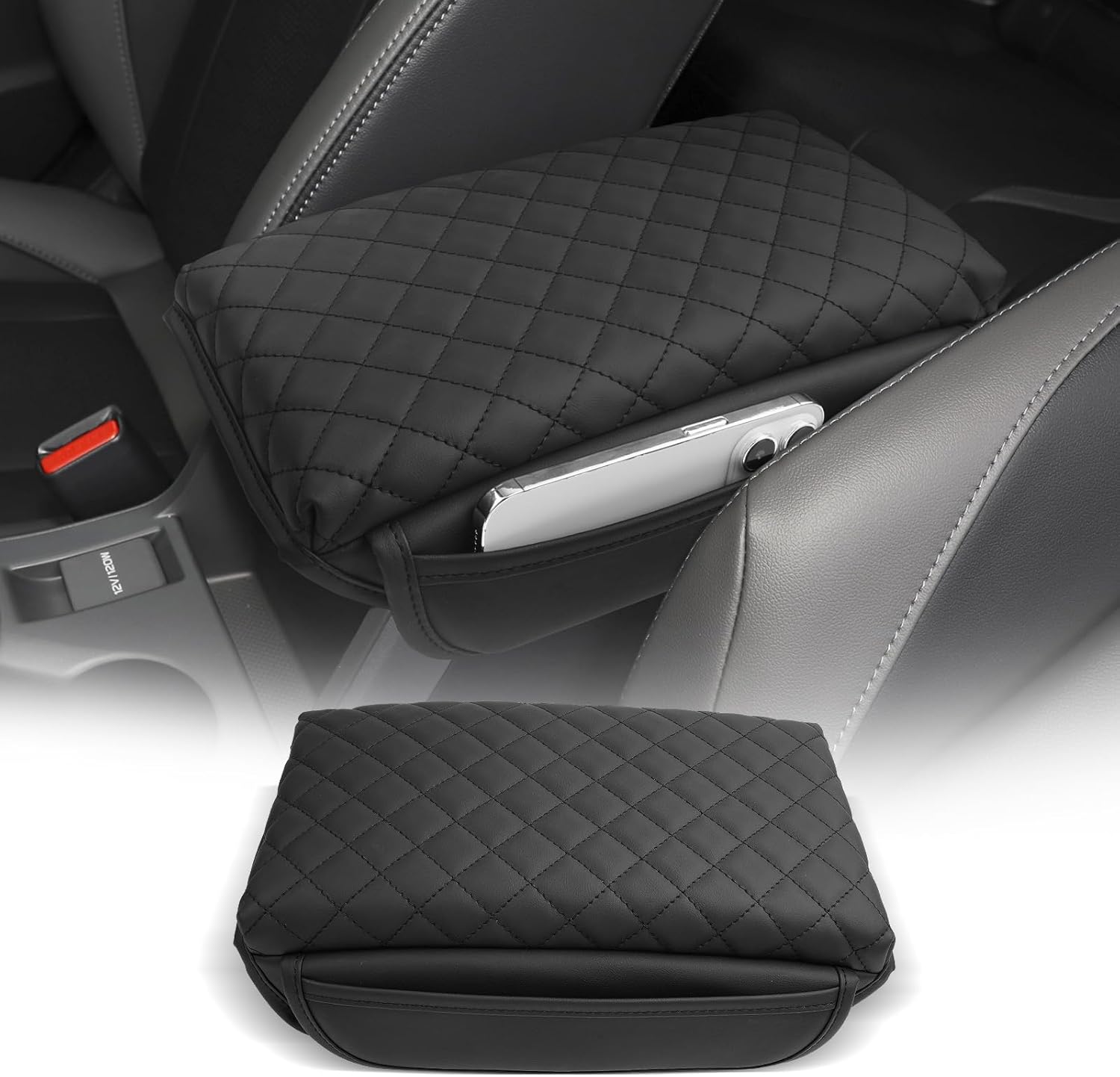 - [Easy To Install] Designed with a flexible elastic band to secure it to the center console (no tools required). With super stretch and pull resistance, it will not change the open/close function of the armrest box.