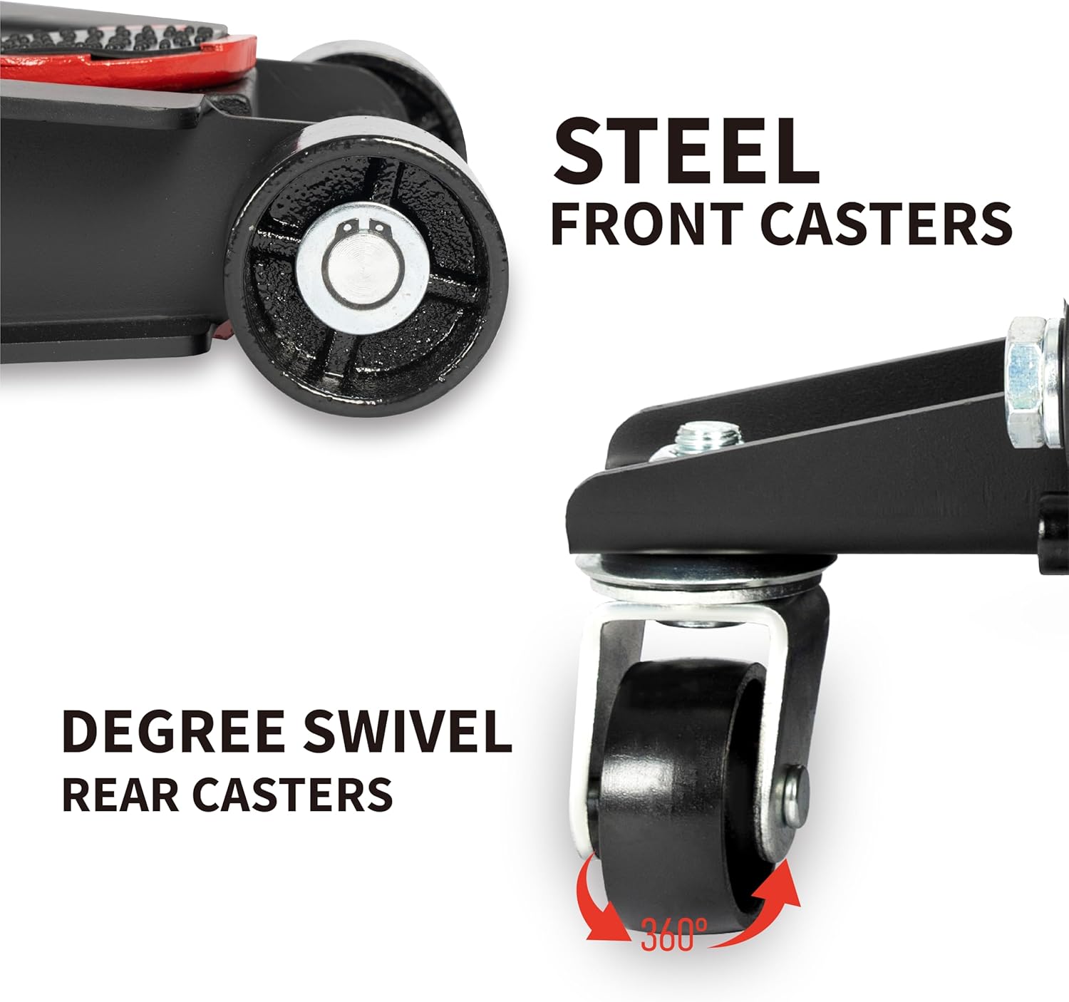 - Hydraulic Quick Lift Dual Piston Technology---Equipped with an innovative dual-piston quick lift pump system, this floor jack significantly reduces the time required to raise your vehicle. The dual-piston design allows for faster and more efficient lifting, reducing the number of strokes needed to reach maximum height.