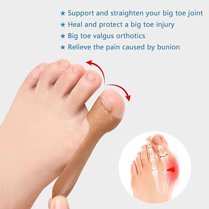 - AS BIG TOE SUPPORT - Relieve the pain in your bunion toe! This toe wrap is a great tape to prevent your toe from moving around and acted as a brace by keeping your toe straight gently. NOT bulky as the other toe braces.