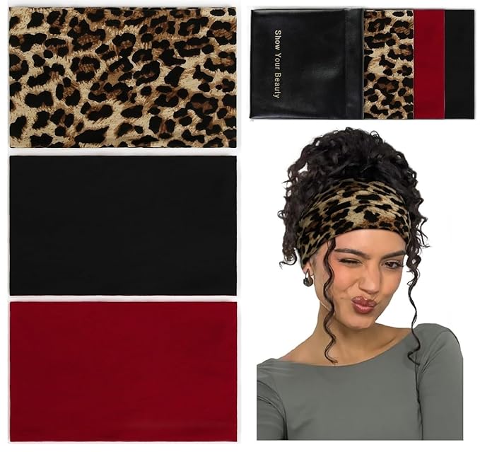 - 6’’ Wide Headbands for Women’s Hair large enough to scrunch into any size you like. You can either wear them fully wide or double them over for a thinner hair band that could potentially absorb more sweat if you're a sweater and/or using to work out. These extra wide head wraps for women would be a great solution for covering your ears while exercising outdoors and also keeping your ear buds in place.