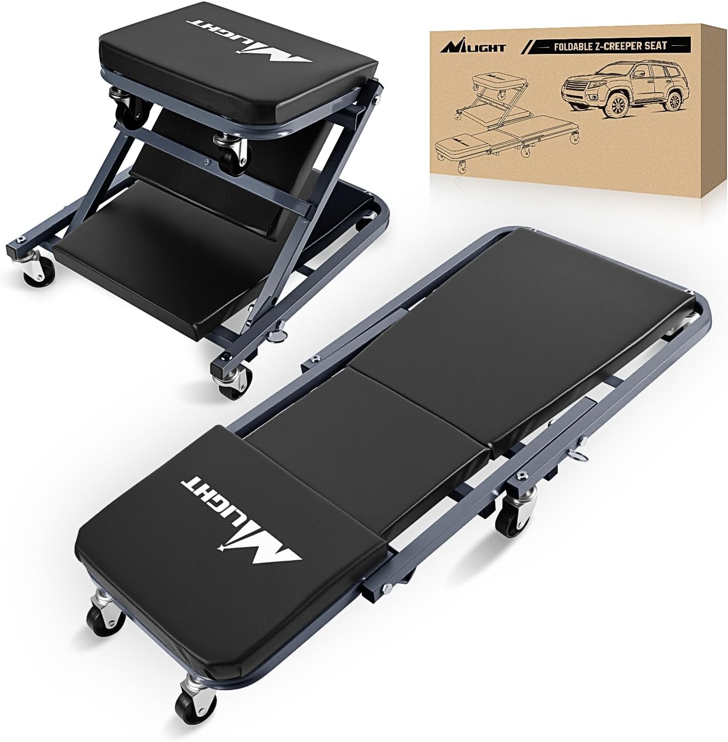 Nilight 36" Z Creeper - 2-in-1 Folding Rolling Mechanic Seat, 36 inches Adjustable Lay-Down or Sit Garage Chair, 300 lbs Capacity, Grey Black