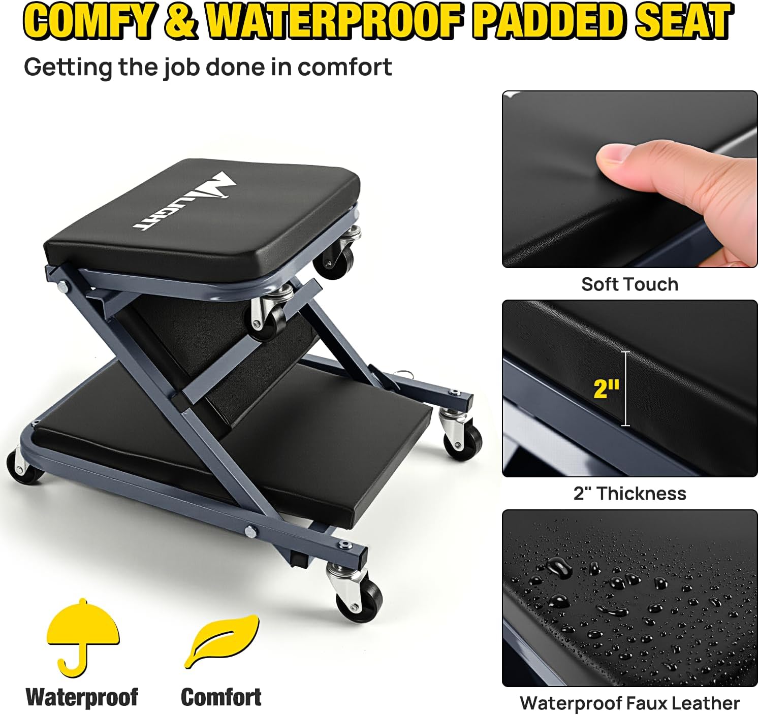 - 2-in-1 Quick Switch: Designed for versatility, this creeper features a simple yet ingenious mechanism that easily converts from a crawler to a stool. Ensures adaptability to a variety of tasks and positions.