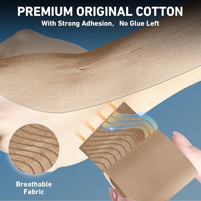 - 💧Waterproof Durability for Hand Movements - Our tape features a water-resistant adhesive that withstands frequent handwashing, rainy days, and even intense sports activities, maintaining reliable support no matter the conditions. Made from 100% breathable cotton, this tape is skin-friendly and perfect for prolonged wear without irritation or discomfort